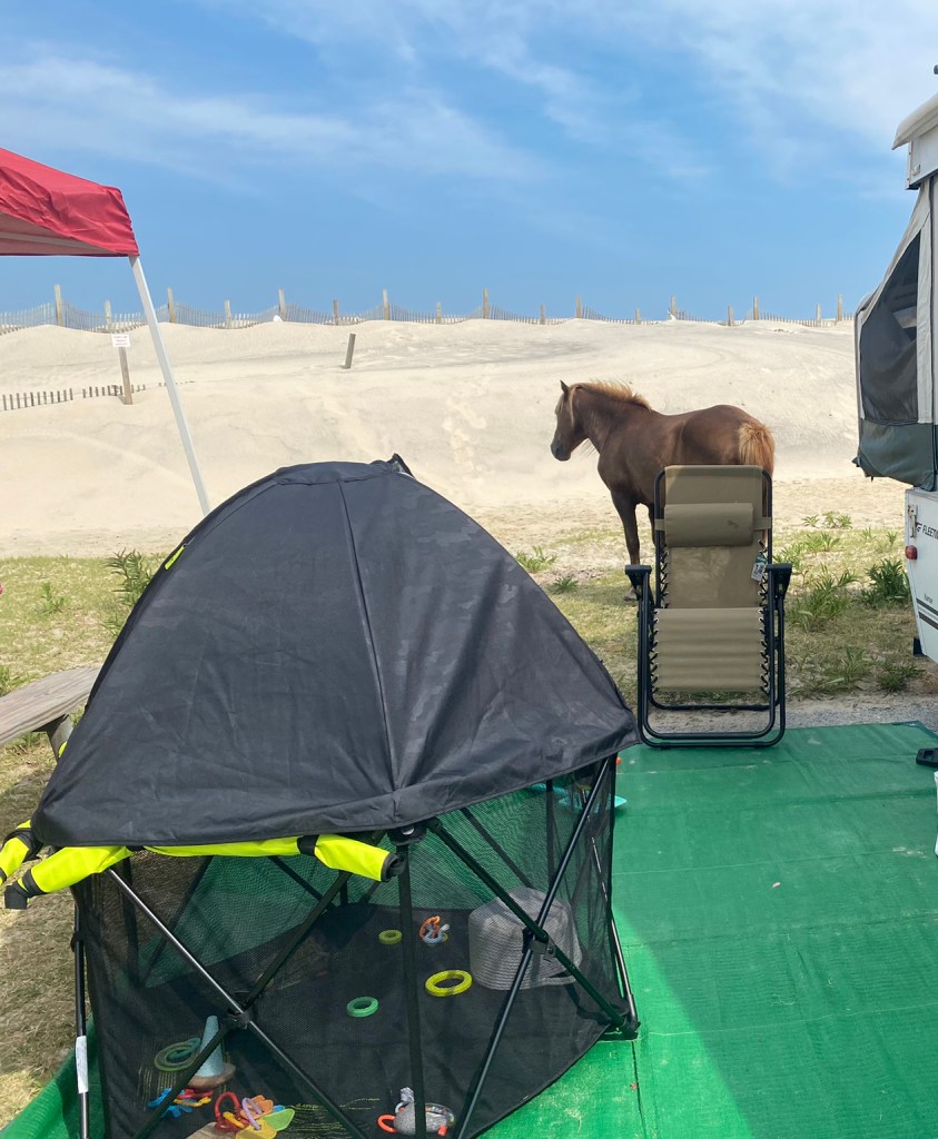 As your baby becomes more mobile a safe place for them to play is essential. You will inevitably need to set them down so you can cook or set-up/tear-down camp. The Evenflo Play-Away Playard is a personal favorite because it has UV cover on top plus roll-down sides so your baby can always be in the shade. It is fairly easy to set-up and tear-down and is large enough for two kids. It also keeps your kids free of dirt or sand.